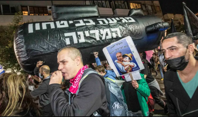 Another 1,000 gathered near Netanyahu’s home in Caesarea, and various hundreds more gathered in Tel Aviv’s Habima Square. Other protests took place at crossings, bridges and plazas across the country.